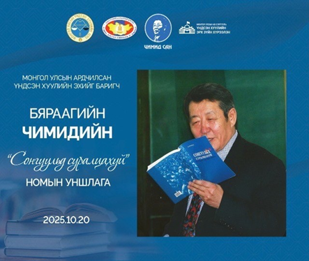 АРДЧИЛСАН ҮНДСЭН ХУУЛИЙН ЭХИЙГ БАРИГЧ БЯРААГИЙН ЧИМИДИЙН “СОНГУУЛЬД СУРАЛЦАХУЙ” НОМЫН ЭРДЭМ ШИНЖИЛГЭЭНИЙ УНШЛАГЫГ ЗОХИОН БАЙГУУЛЛАА.